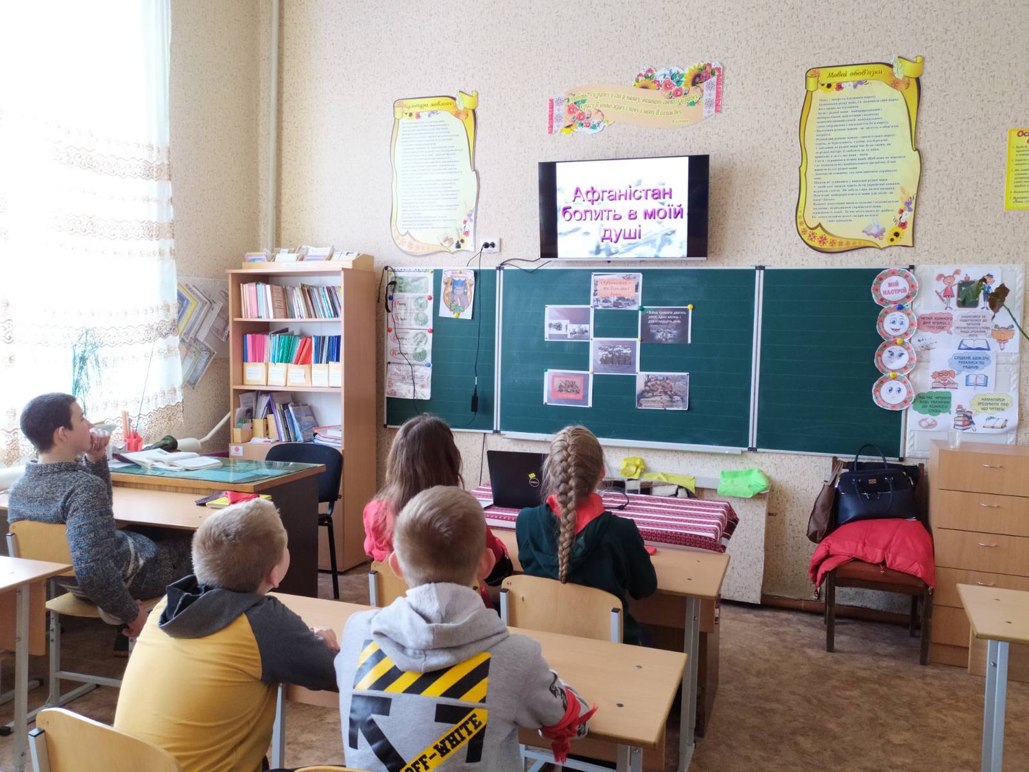 Сьогодні у нашому закладі пройшла єдина виховна година, для учнів 5-11 класів , до Дня вшанування учасників бойових дій на території інших держав. Афганська війна , війна яка залишила слід у серцях наших співвітзизників . Згідно із статистикою, в Афганістані загинуло чотири тисячи , сімдесят ва українських воїнів зникли безвісти. Майже три тисячі матерів втратили своїх синів, пів тисячи жінок стали вдовами , сімсот одиннадцять дітей сиротами.