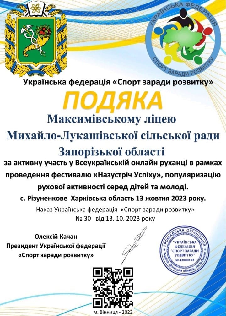 Максимівський ліцей Михайло-Лукашівської сільської ради приєднується до Всеукраїнської руханки у рамках проєкту “Єдина Україна“ Можна переглянути за посиланням ТУТ